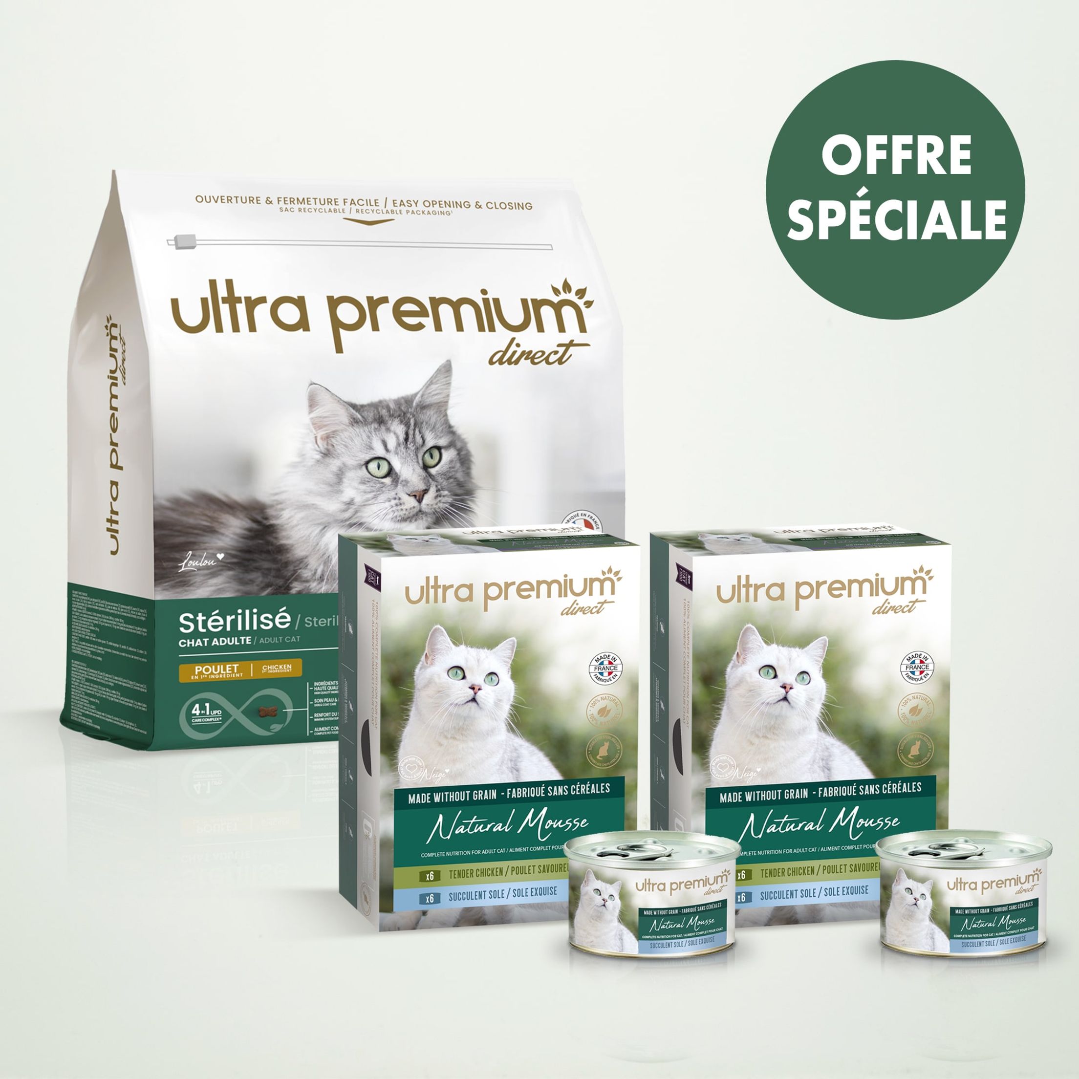 | Atout | Conviennent aux chats stérilisés ou non. Haute tolérance digestive. Omega-6 (2.3 %), Omega-3 (0.8 %). |